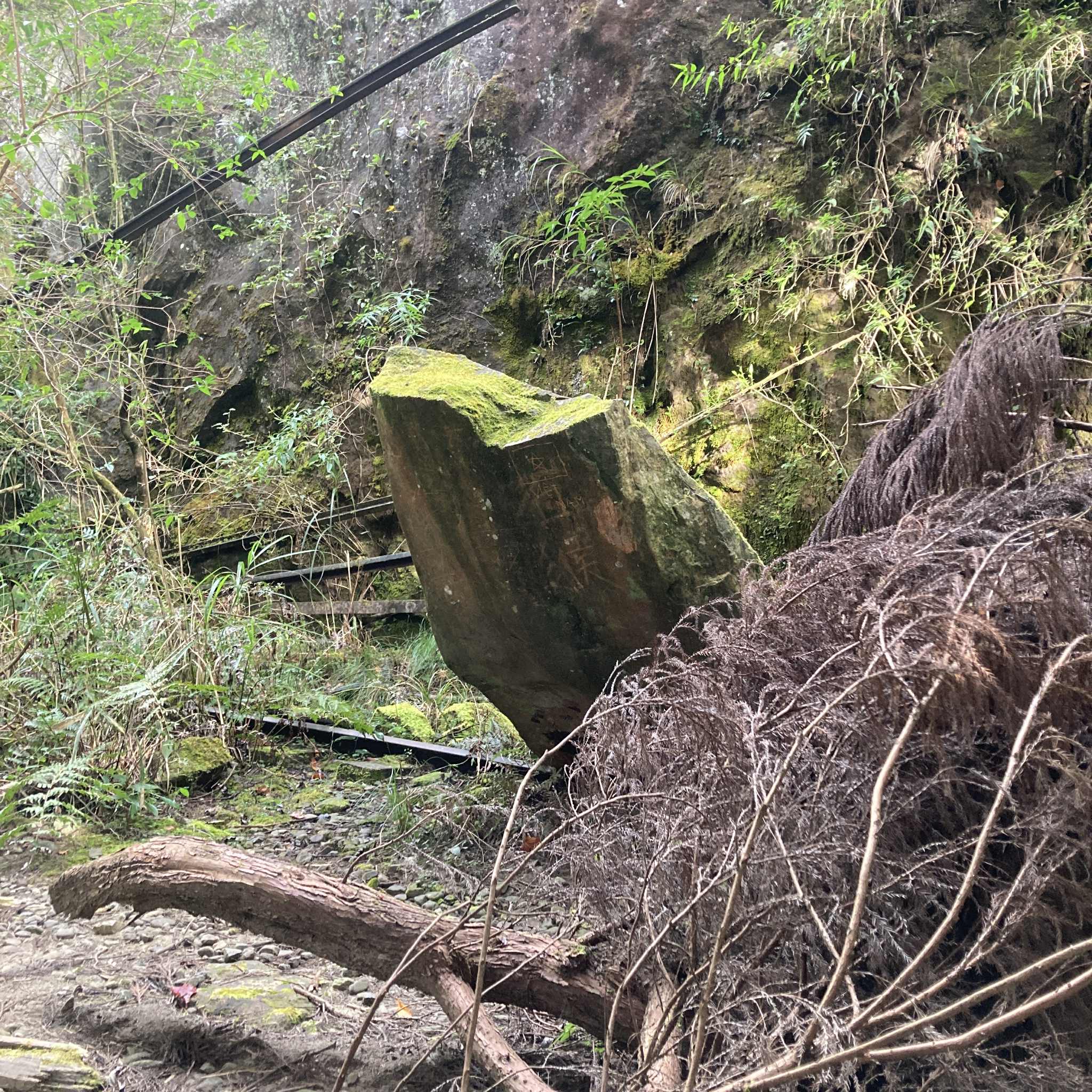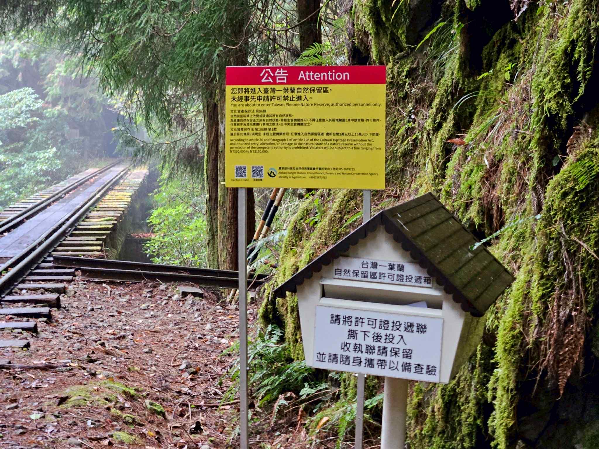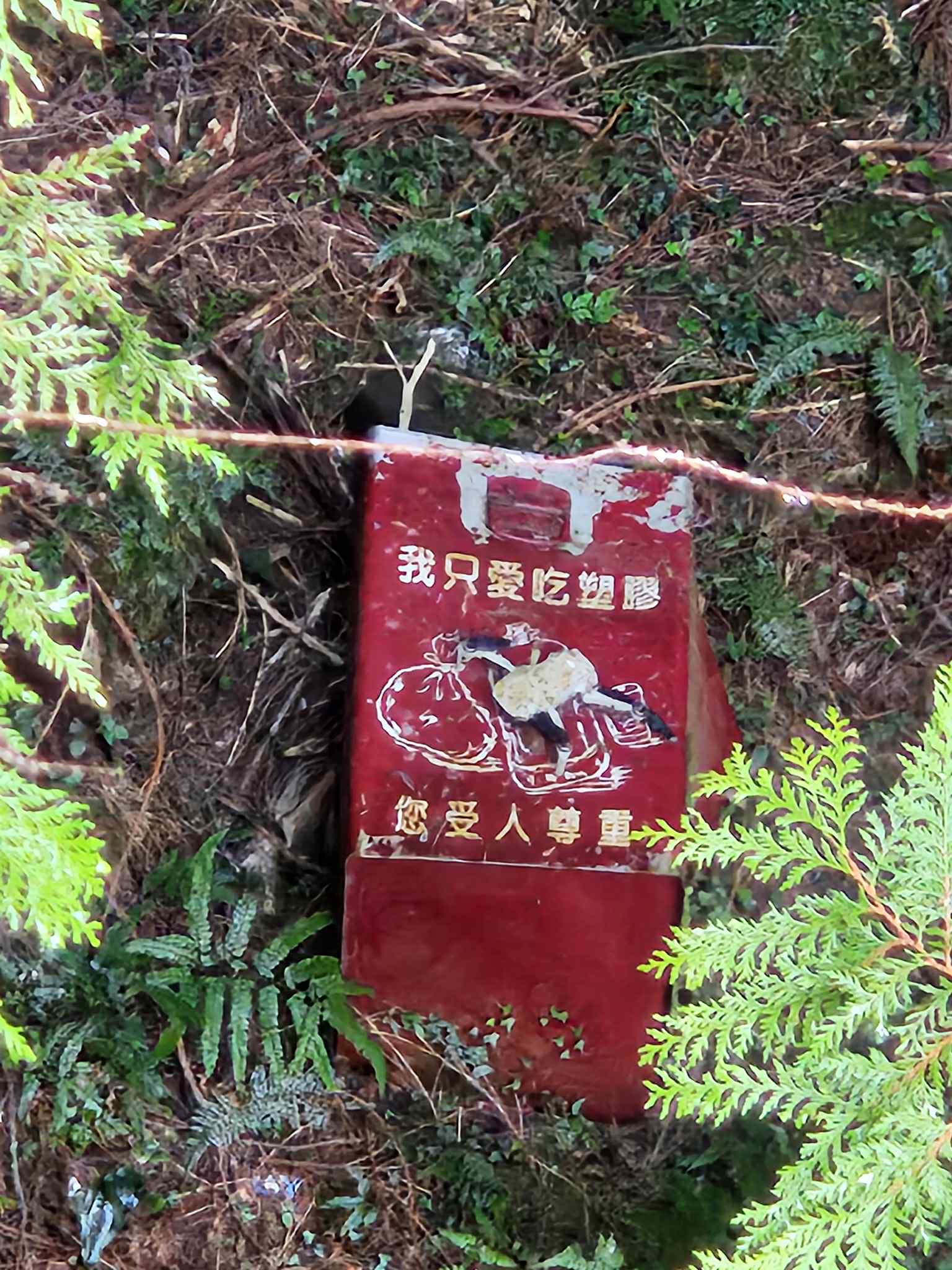 繼續走,第二個有趣點來了,是山洞。頭燈也大派用場,其實我很喜歡用頭燈的感覺,就是望向那裡那裡便會在黑暗中發亮,有點像漫畫入面的超人或機械人。山洞入面還有蝙蝠,但牠們為數不多,多數都是睡著。走到眠月線保護區中段,那裡有一個信箱,是專門放「入山」許可證,受保護許可的還有叫一葉蘭的植物,如果要在這裡繼續往前走到石猴就要先申請。放入許可證,也開始去上鐵橋。